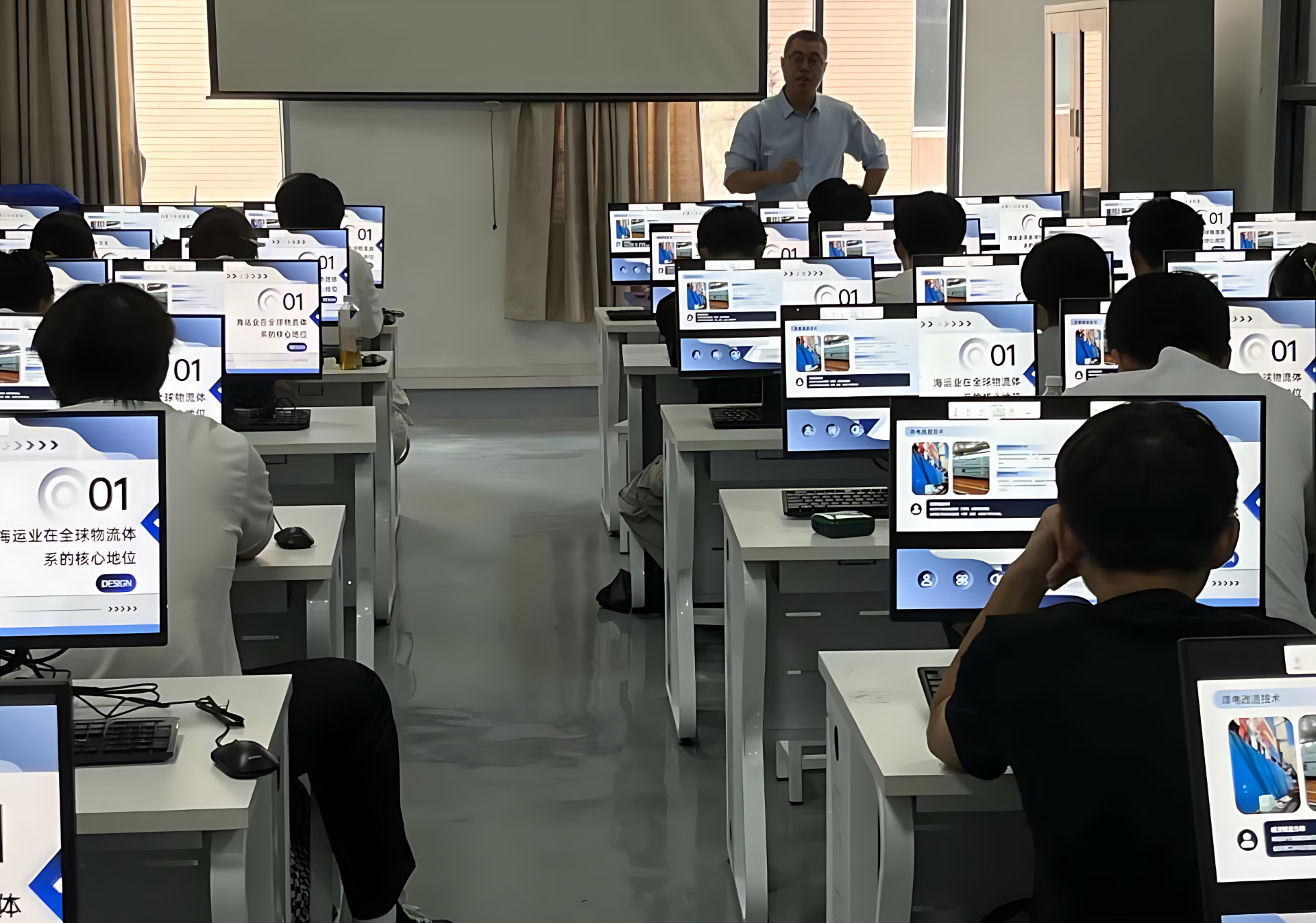 解建东结合丰富案例与通俗讲解,向同学们系统介绍了先进海运装备技术及其在远洋运输中的实际应用情况,重点分析了自动化技术在提高船舶运行效能、增强航行安全性和减少运营成本方面的积极作用,并对人工智能、大数据、物联网等技术与船舶关键装备智能运维、故障诊断和绿色发展等领域深度融合的未来趋势进行了展望。